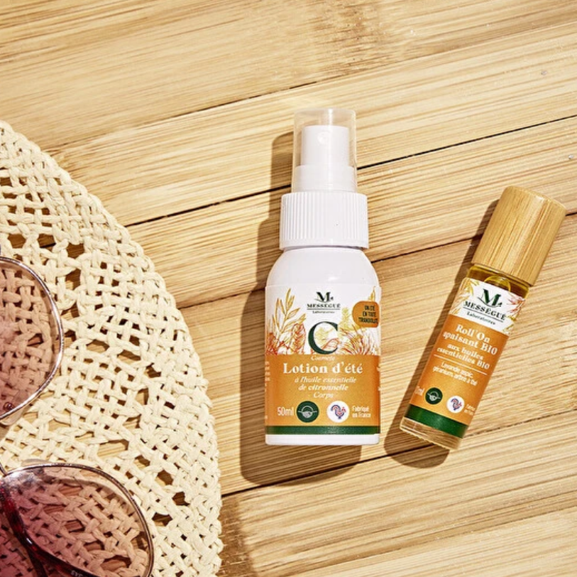 Le duo été éerein associe deux incontournables de la saison : une lotion fraîche et protectrice, et un roll-on apaisant aux huiles essentielles bio.